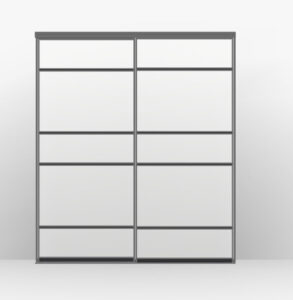 Dankzij het slimme railsysteem zijn de deuren vlot en geruisloos te bedienen. De schuifdeuren worden voorzien van zowel een boven- als onderrails, wat zorgt voor stabiliteit en een lange levensduur. De bovenrails kan stevig aan de wand of aan de muur worden geschroefd, afhankelijk van de situatie en de beschikbare constructie. De onderrails wordt niet geschroefd, maar op de vloer geplakt, wat zorgt voor een nette afwerking zonder ingrijpende werken aan de vloer.