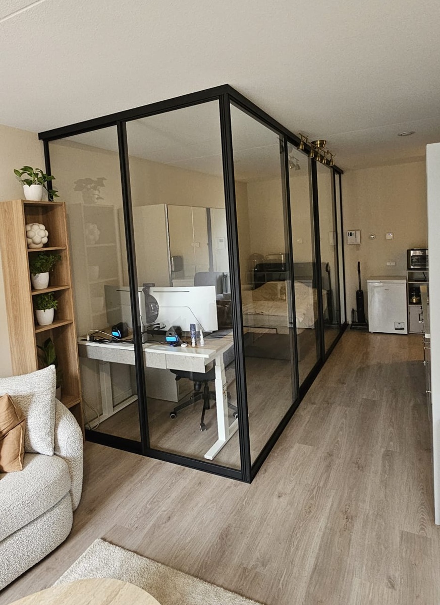 Woon je in een studio en wil je graag je slaapplek afscheiden zonder licht en ruimte te verliezen? Of wil je juist de woonkamer en keuken van elkaar scheiden voor meer rust en overzicht? Met onze schuifdeuren kan het allemaal. Dankzij het slimme schuifsysteem bespaar je ruimte én geniet je van een strak, elegant design.