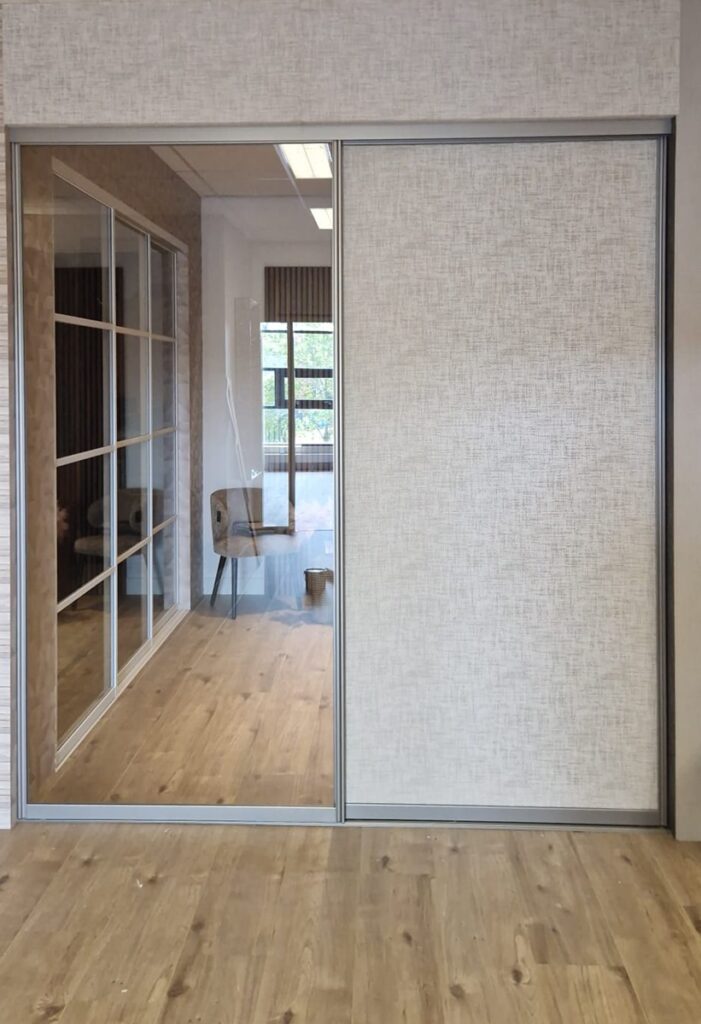 - Laat uw schuifdeuren behangen zodat deze wegvallen in de ruimte