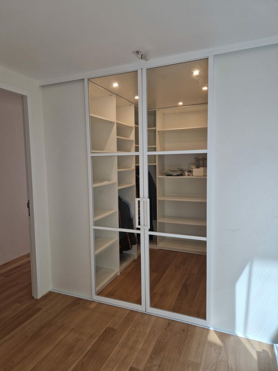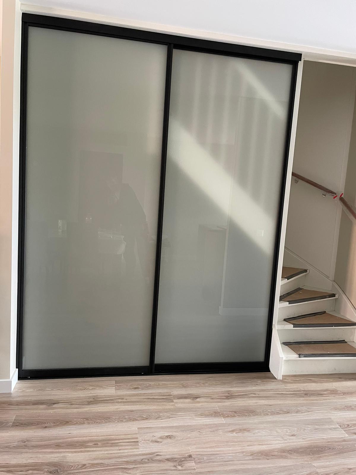 De schuifdeuren zijn voorzien een gecoat alumium profiel met boven- en onderrails in grafiet zwart, Inox of in het wit. Elke deur wordt volledig op maat gemaakt, dit kan tot een maximale breedte van 1200 mm en een maximale hoogte van 2700 mm per deur. Dankzij het schuifmechanisme glijden deuren soepel en stil open en dicht, zonder ruimteverlies door openslaande deuren